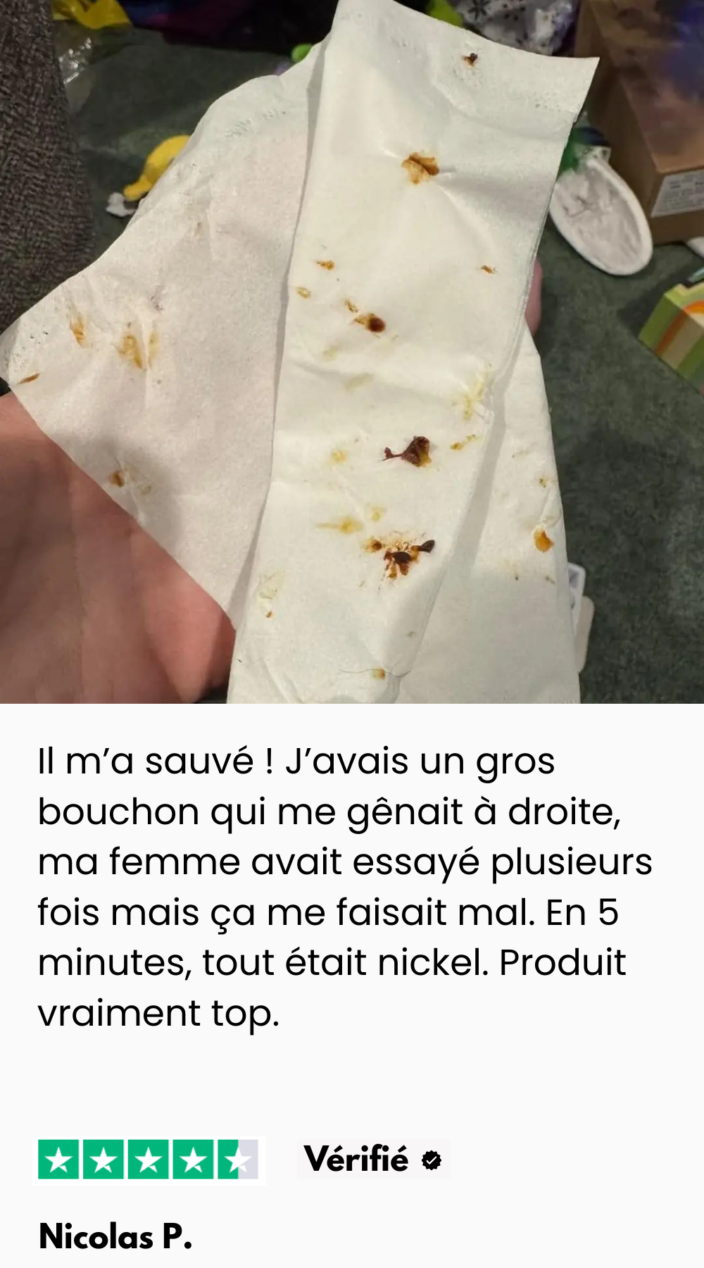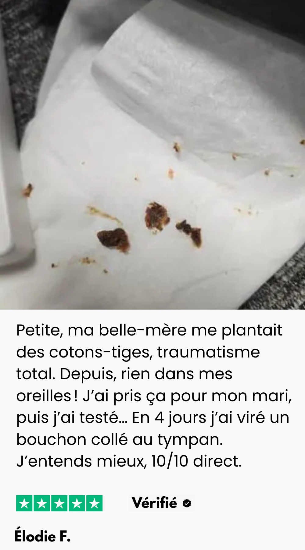 « Produit vraiment efficace pour enlever l’excès de cérumen. L’application est simple, sécurisée, et le confort auditif revient très vite. »