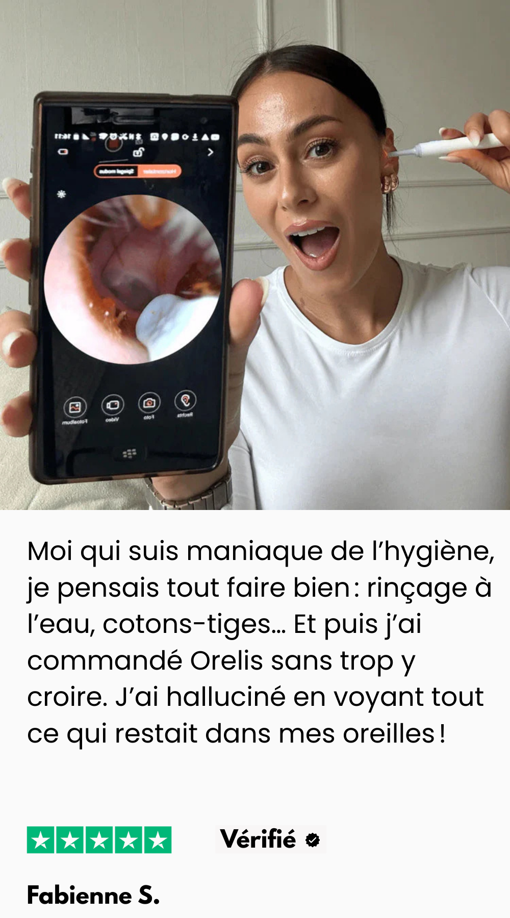 Plus de 1 500 utilisateurs ont déjà adopté Orelis™ — une solution douce, précise et sécurisée pour éliminer l’excès de cérumen et retrouver une clarté d’écoute immédiate.